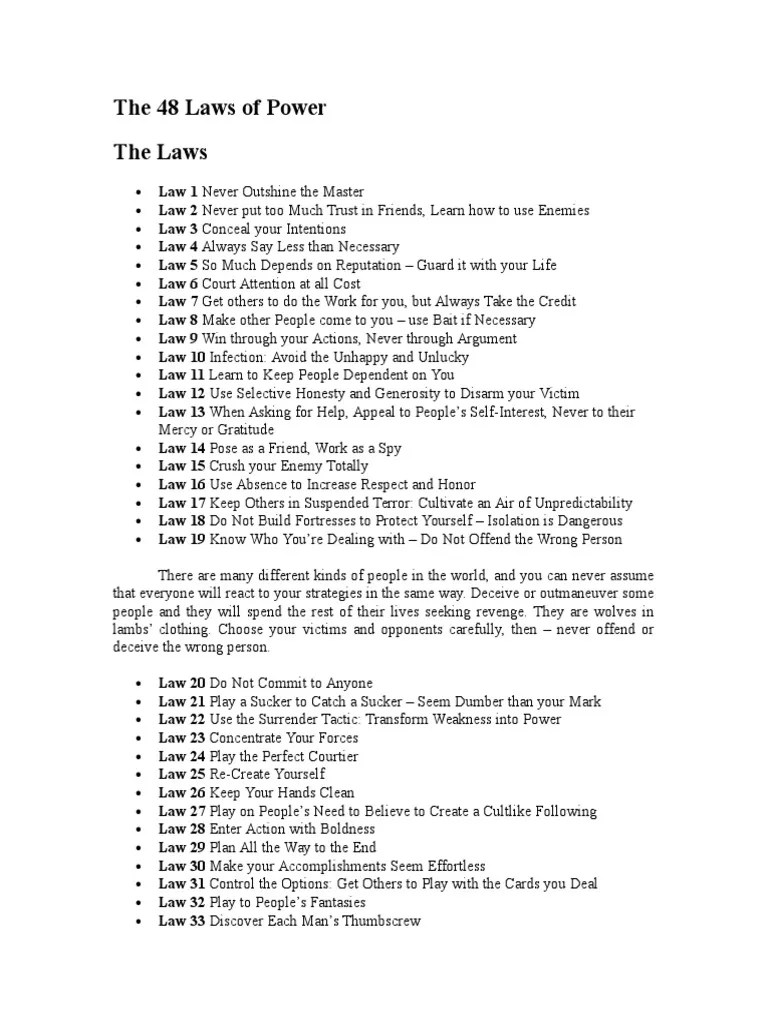 It is teaching you how people really are in the real world. Web this book is not teaching anyone to be amoral. It separates the behaviors and tactics of people in history who have succeeded and. Web the 48 laws of power. Web the 48 laws of power. [1] the book is a new york times bestseller, [2] [3] selling over 1.2 million copies in the united states.
